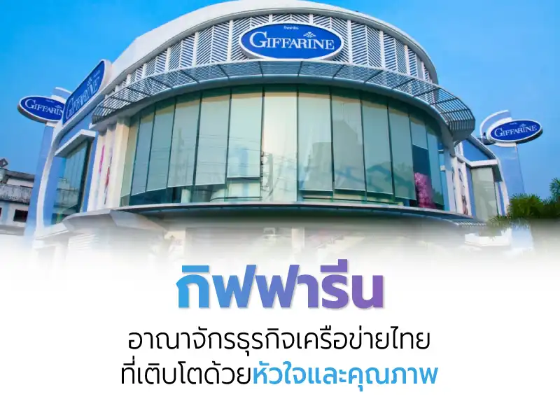 Giffarine Thailand แบรนด์ธุรกิจเครือข่ายชั้นนำ ที่แข็งแกร่งในทุกมิติ ก่อกำเนิดจากความมุ่งมั่นของคณะแพทย์ และเภสัชกรที่ร่วมกันพัฒนาผลิตภัณฑ์ เพื่อคุณภาพชีวิตของคนไทย ผ่านการ รับรองที่ถูกต้องตาม หลักวิชาการ ด้วยปณิธานยึดมั่นในความจริงใจ และความรับผิดชอบต่อผู้บริโภคอันเต็มเปี่ยม กิฟฟารีน มียอดขายที่เติบโตอย่างต่อเนื่องอันเกิดจากการวางแผนการตลาดที่มีวิสัยทัศน์ แผนการขายที่มีประสิทธิภาพ สามารถสร้างความมั่นคงให้แก่นักธุรกิจกิฟฟารีน พร้อมทั้งการสนับสนุนด้วยผลิตภัณฑ์คุณภาพ ในฐานะผู้นำธุรกิจเครือข่ายที่พร้อมจะ ตอบสนอง และสร้าง ความพึงพอใจแก่ผู้บริโภคในระยะยาว