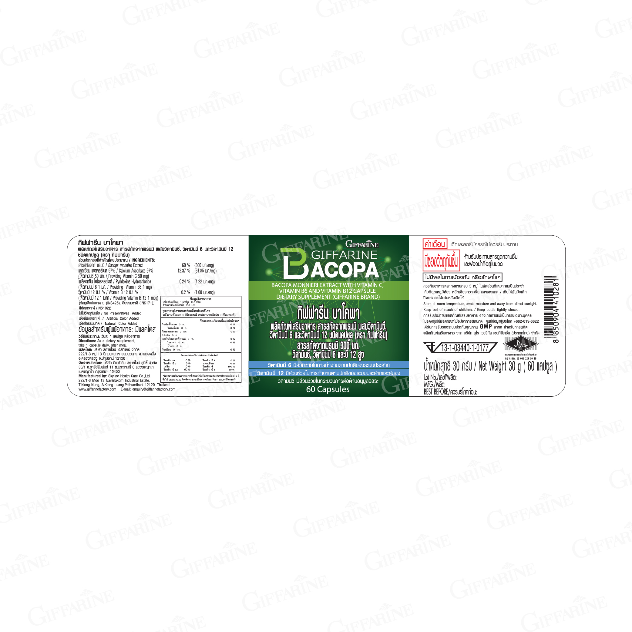 ผลิตภัณฑ์เสริมอาหาร สารสกัดจากพรมมิ ผสมวิตามินซี วิตามินบี 12 และวิตามินบี 6 ชนิดแคปซูล (ตรา กิฟฟารีน)