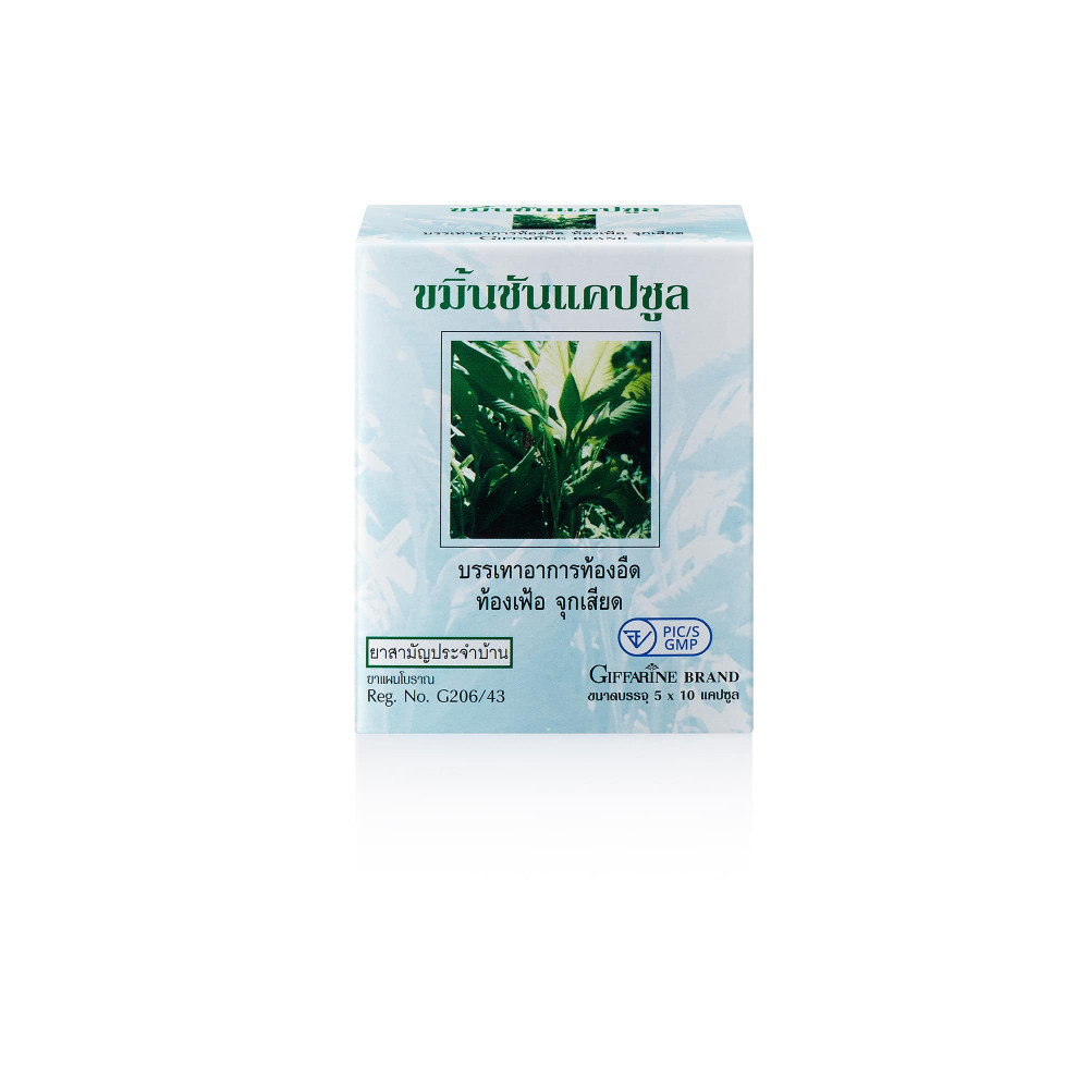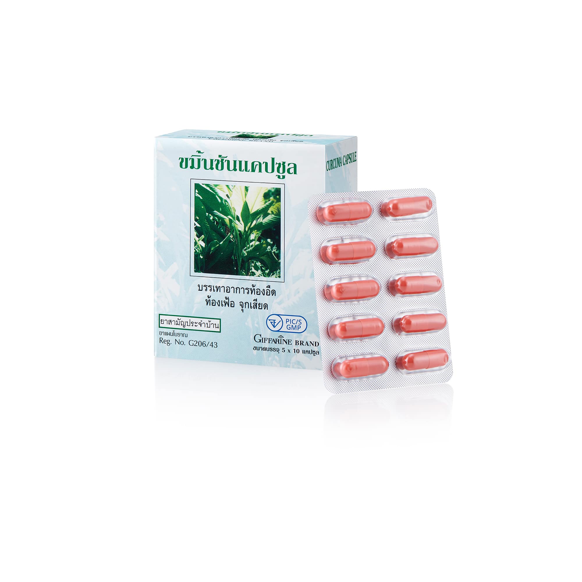 ส่วนประกอบสำคัญใน 1 แคปซูลประกอบด้วย: ขมิ้นชัน 300 มก สรรพคุณ : บรรเทาอาการท้องอืด ท้องเฟ้อ จุกเสียด เลขทะเบียนที่ G206/43