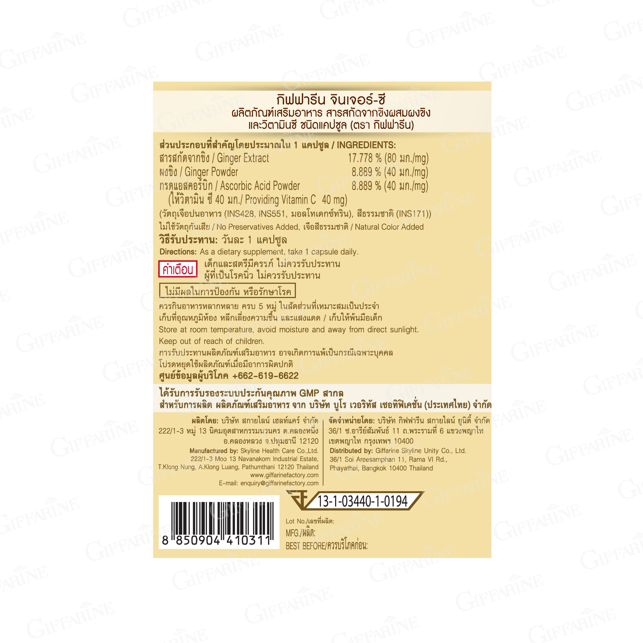 ผลิตภัณฑ์เสริมอาหารสารสกัดขิงผสมผงขิง และวิตามินซี ชนิดแคปซูล (ตรา กิฟฟารีน)