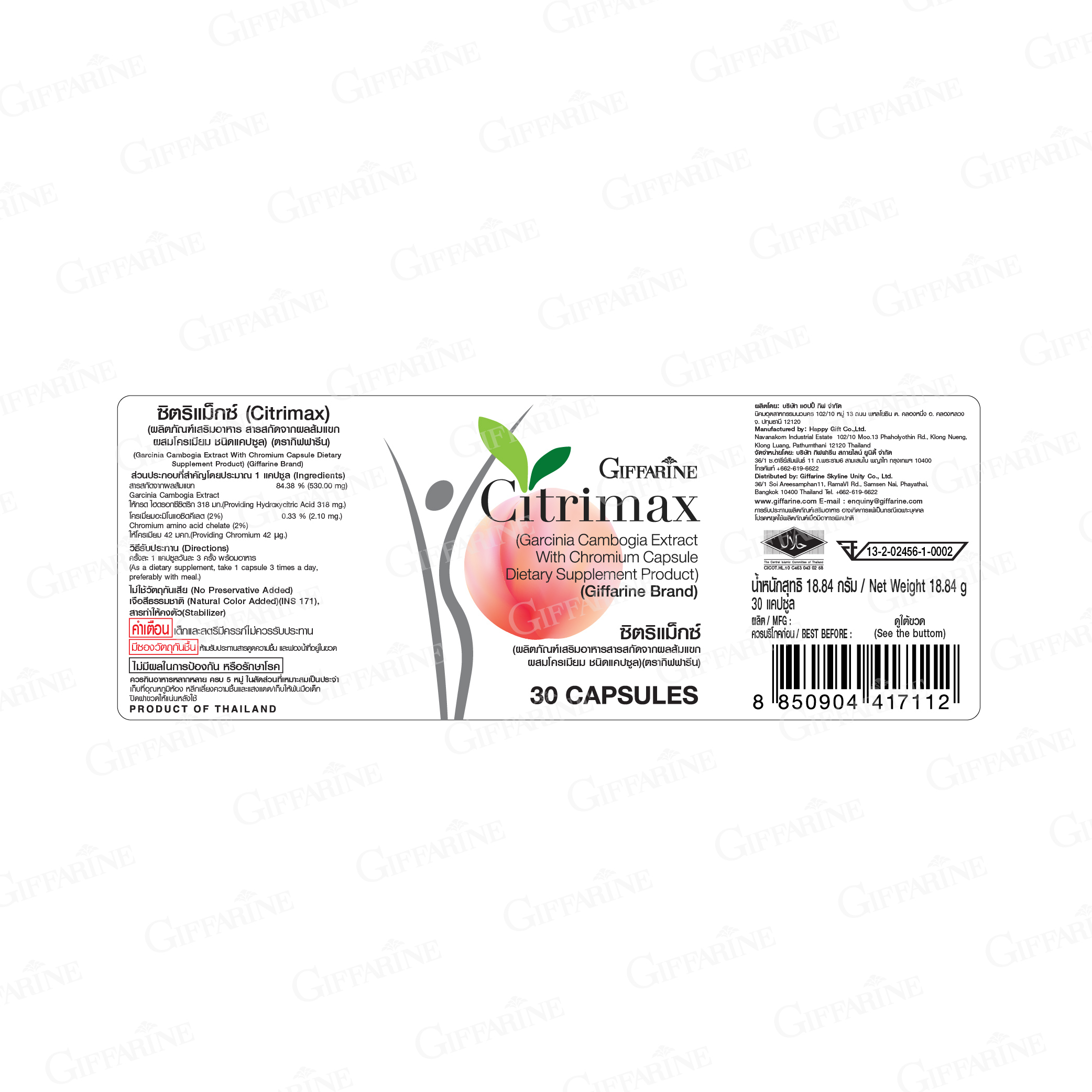 ผลิตภัณฑ์เสริมอาหารสารสกัดจากผลส้มแขก ผสมโครเมียมชนิดแคปซูล(ตรา กิฟฟารีน) ส่วนประกอบที่สำคัญใน1 แคปซูล ประกอบด้วย: สารสกัดจากผลส้มแขก 530.00 มก. (ให้กรดไฮดรอกซีซิตริก318 มก.) โครเมียมอะมิโนแอซิดคีเลต 2.10 มก. (ให้โครเมียม42 มคก.)