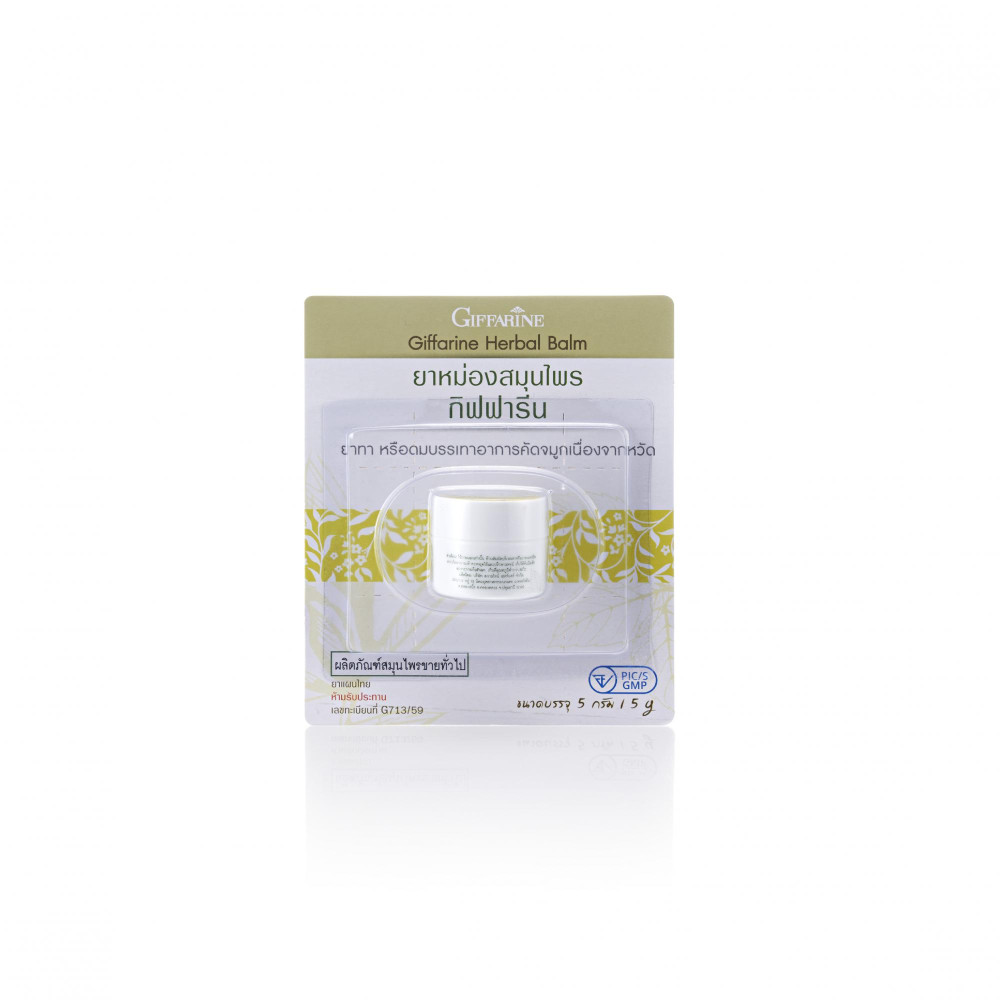 ยาแผนไทย ผลิตภัณฑ์สมุนไพรขายทั่วไป ส่วนประกอบที่สำคัญโดยประมาณ การบูร 24% เกล็ดสะระแหน่ 22.00% น้ำมันยูคาลิปตัส 14.40 % พิมเสน 2.00 % น้ำมันสะระแหน่ 2.00 % น้ำมันระกำ 2.00 % น้ำมันผิวส้ม 0.50 % น้ำมันลาเวนเดอร์ 0.20 % น้ำมันมะกรูด 0.20 % น้ำมันโหระพา 0.20 %