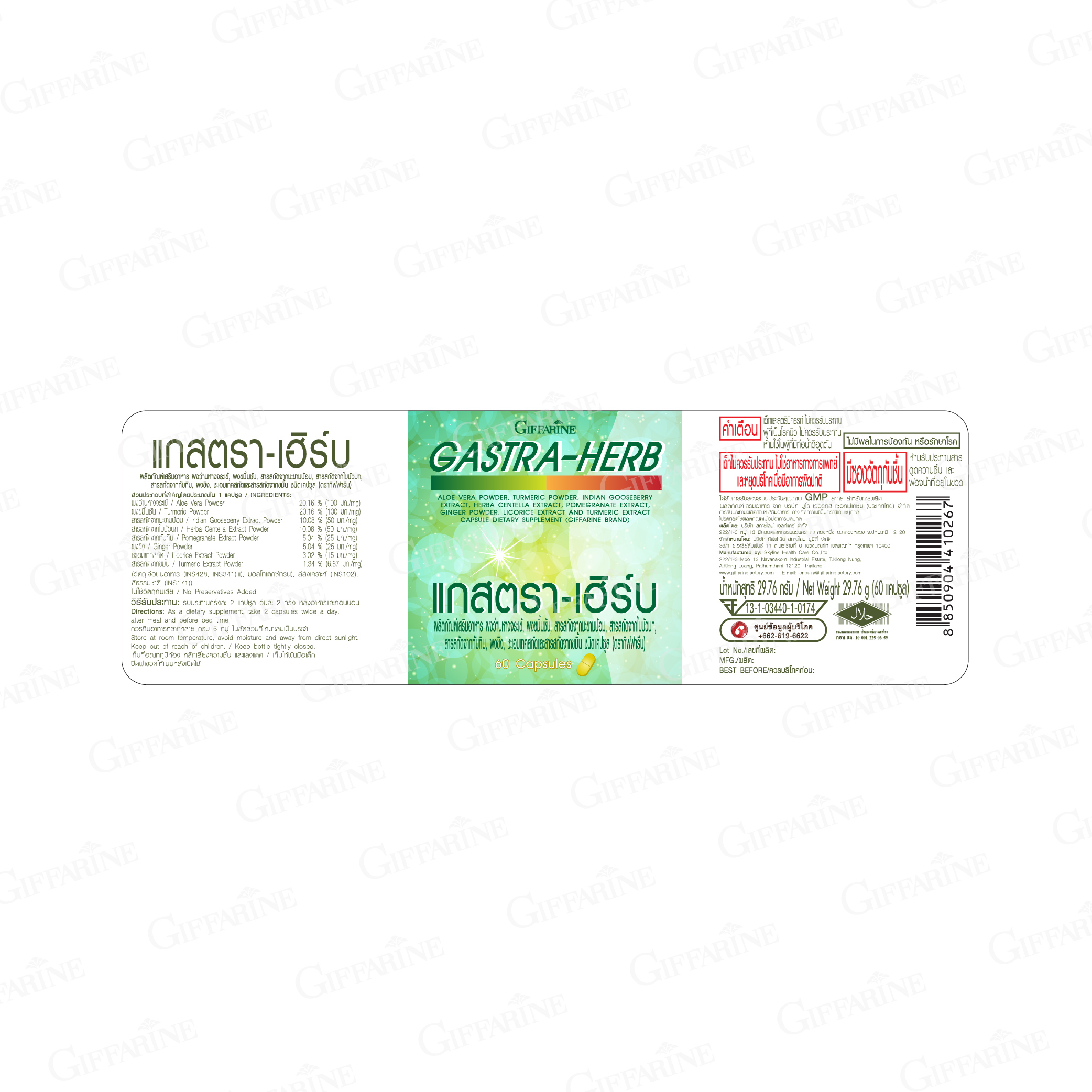 ผลิตภัณฑ์เสริมอาหาร ผงว่านหางจระเข้ ผงขมิ้นชัน สารสกัดจากมะขามป้อม สารสกัดจากใบบัวบก สารสกัดจากทับทิม ผงขิง ชะเอมเทศสกัด และสารสกัดจากขมิ้น ชนิดแคปซูล (ตรา กิฟฟารีน)